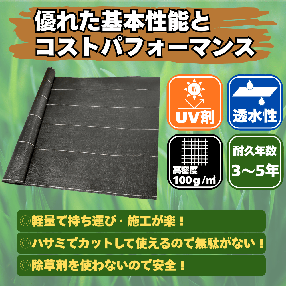 | 耐久年数 | 3〜5年(上に砕石や砂利を敷けば半永久) |