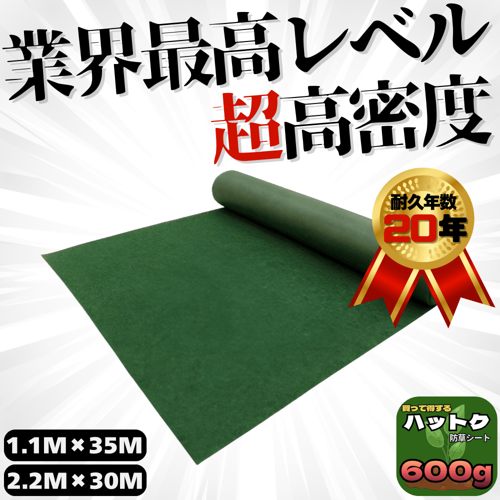 ハットク® 防草シート 耐用年数20年 幅1.1m×35m 幅2.2m×30m 600g/m2 10坪 6坪 PET素材 不織布 厚み約2.6mm [BS-600g-35-1.1/2.2]